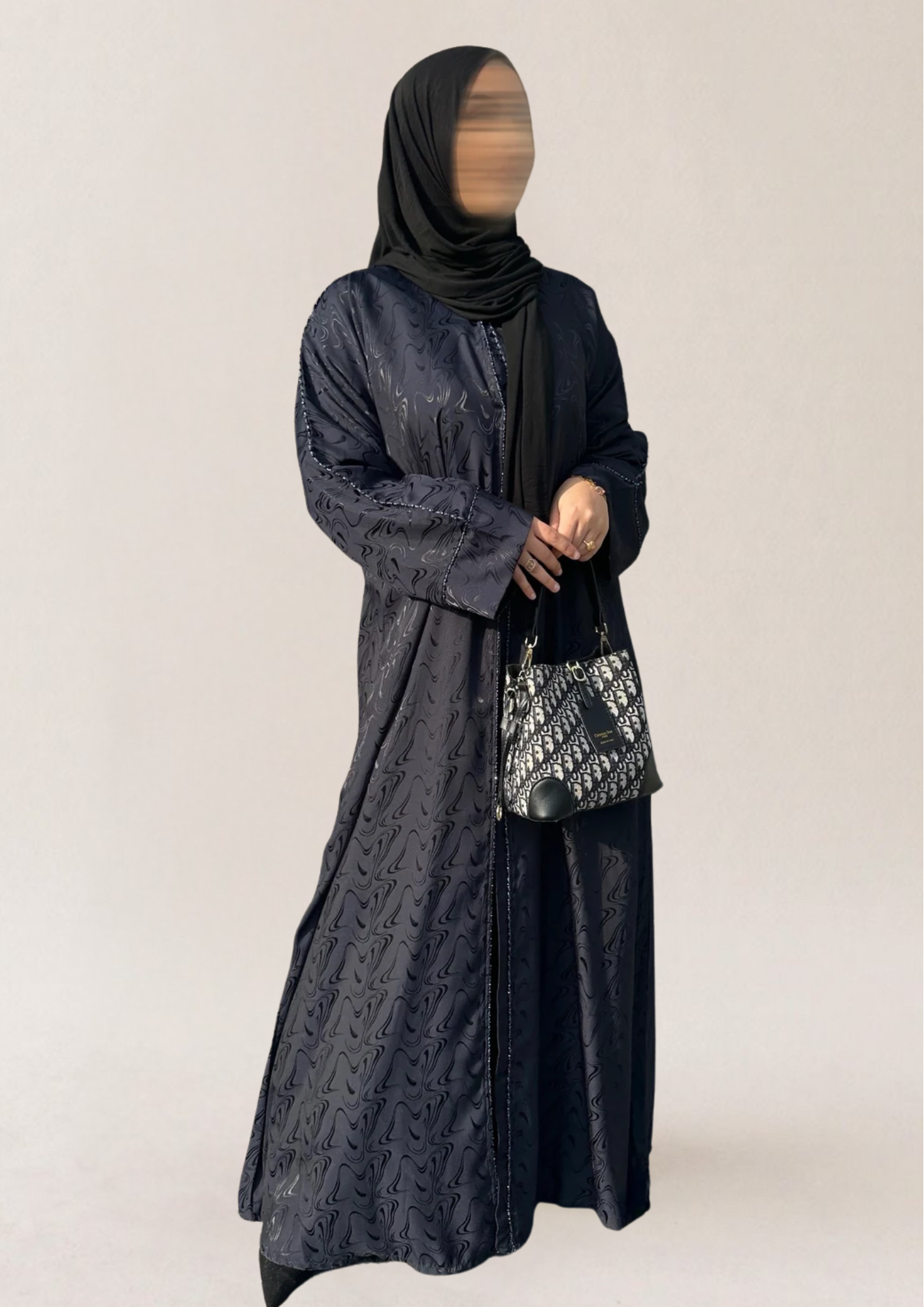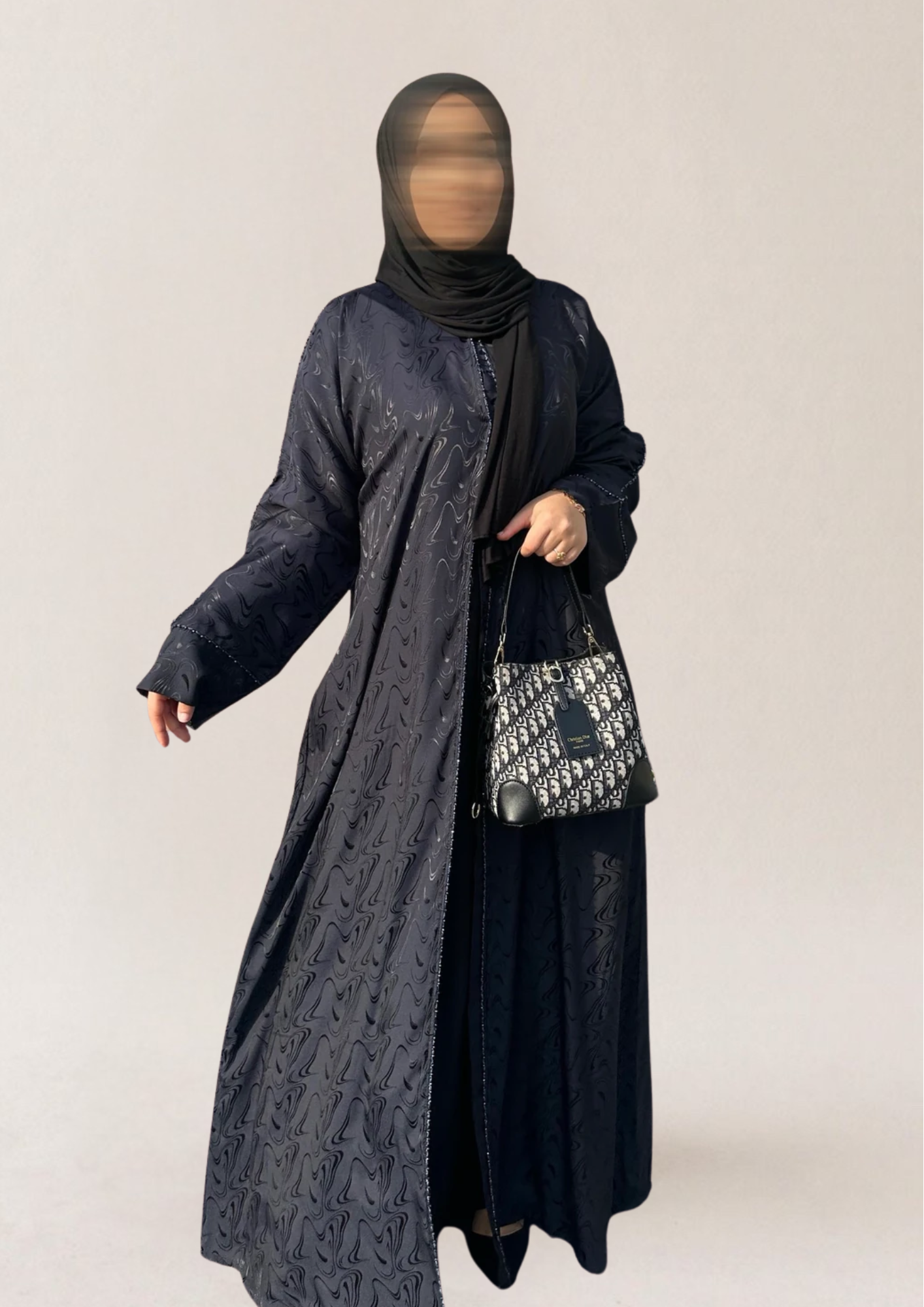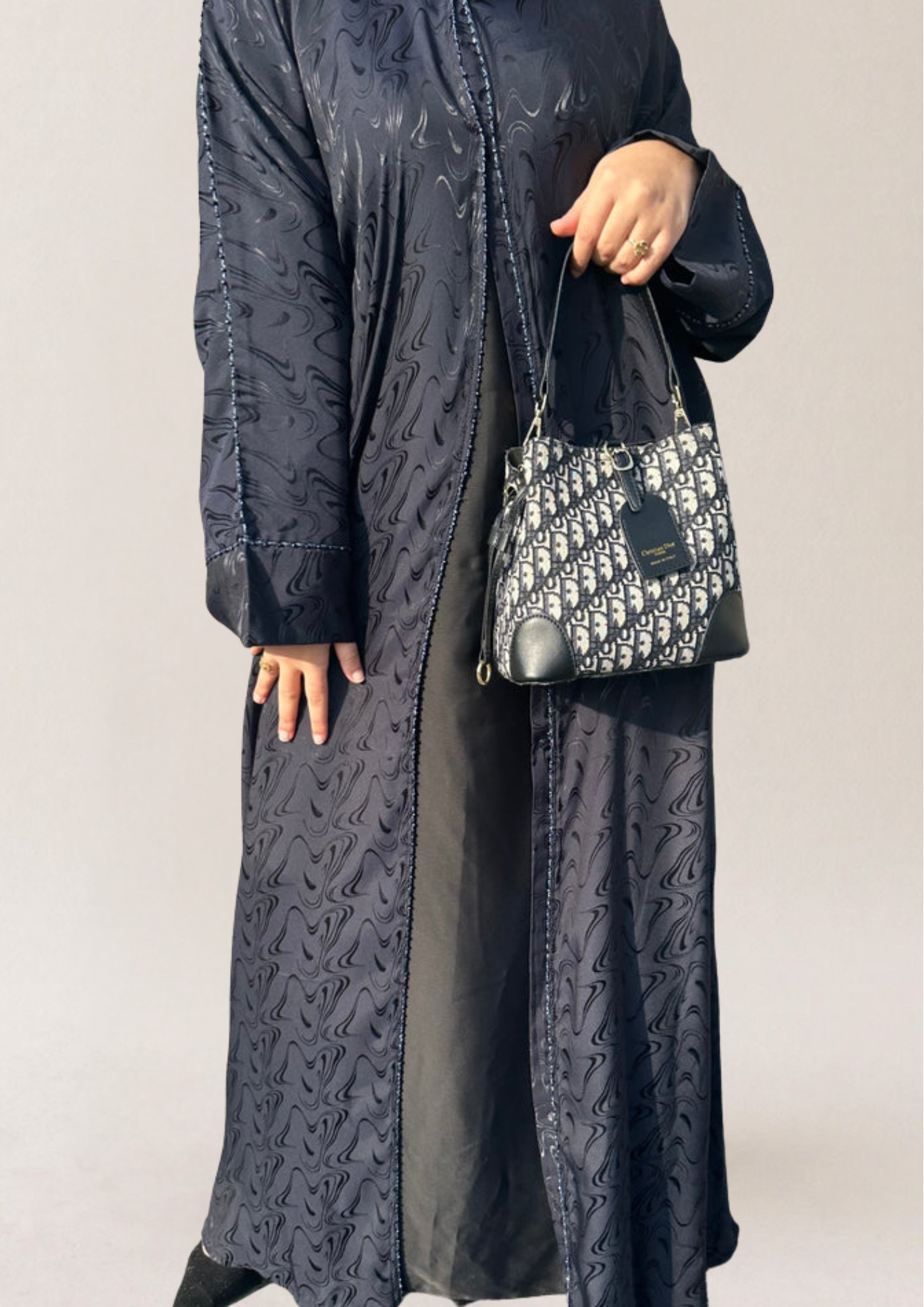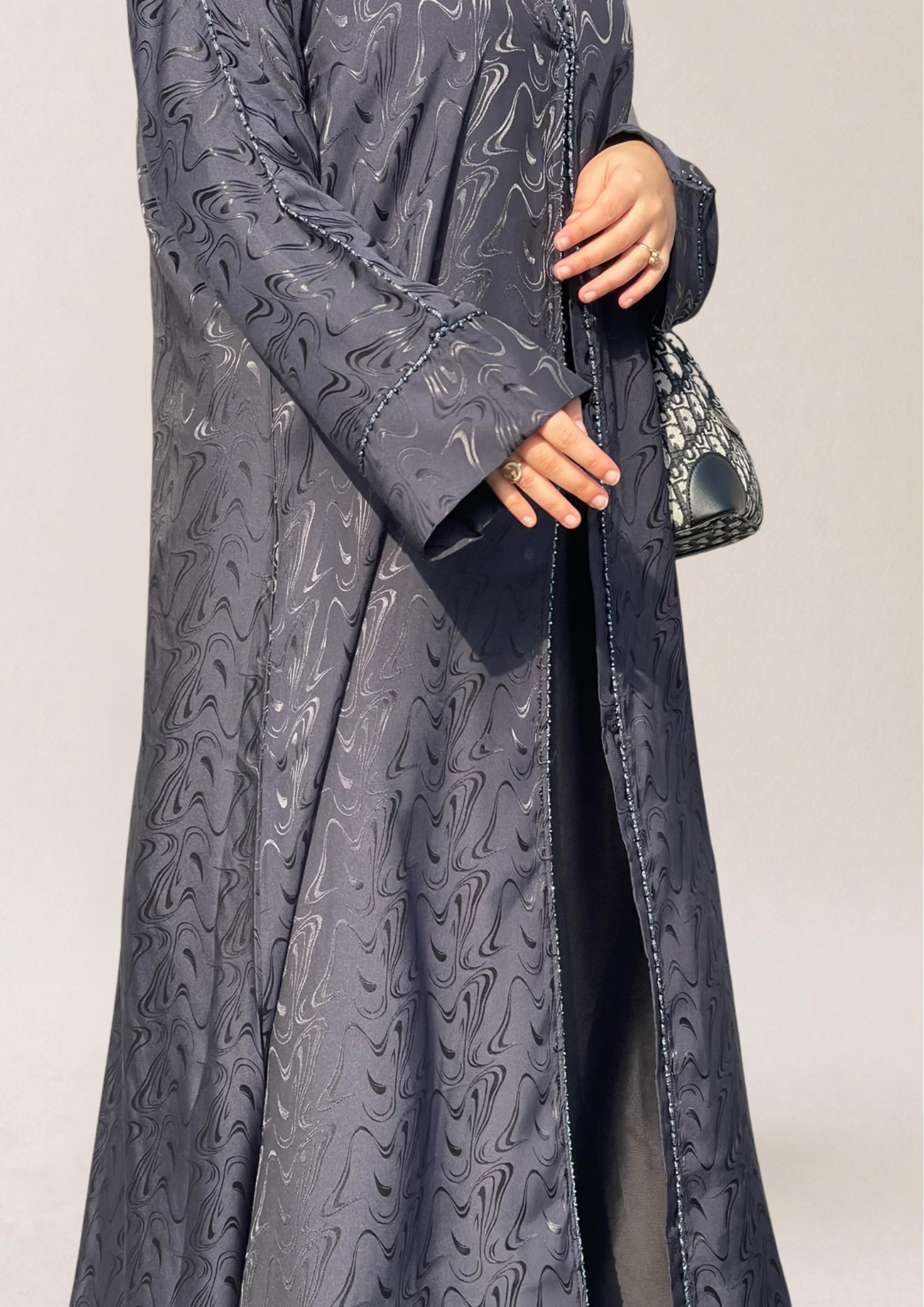 عباية دبي مخيطة يدوياً، تجمع بين البساطة والأناقة والتواضع.